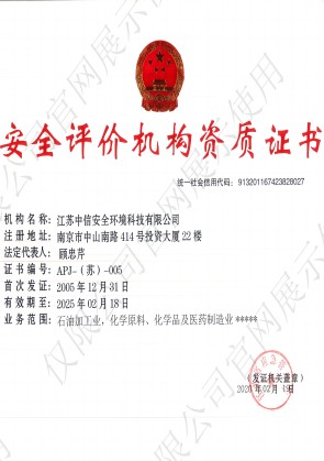 首次取得江蘇省安監(jiān)局頒發(fā)的安全評價機(jī)構(gòu)資質(zhì)證書